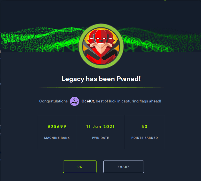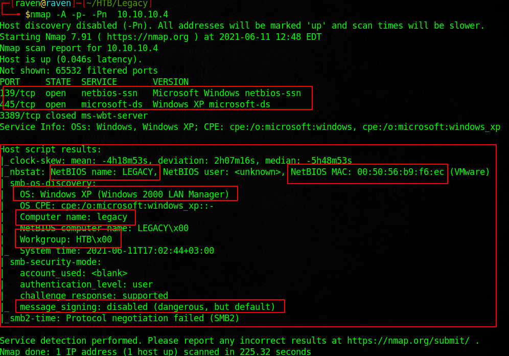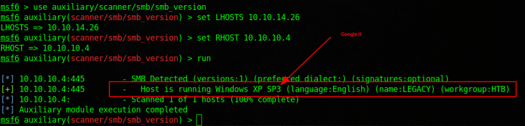 Legacy is designed to show the flaws in SMB. We will use the tools nmap, metasploit, enum4linux, and some good old fashioned research to root this box. Start with an nmap scan and see if you can enumerate users. Then run enum4linux against the target. Note the host system, group name, computer name. There is a ton of information that we can research. Look into MS08-067, and load the module into metasploit. Once we run that we should have access to the machine. From there we can dump the credentials and enumerate good internal information. You will find the flags inside of the user and admin desktops.