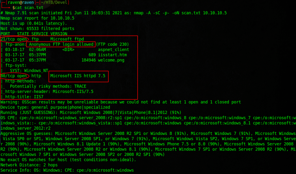 Devel is a very fun box that gets into reverse shells and default web pages. Start with an nmap scan.