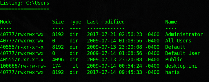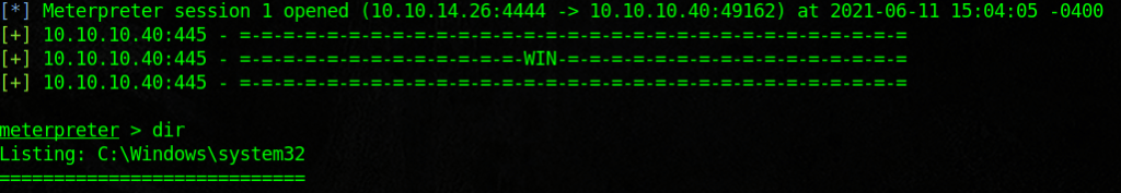Note the versions and message signing, Domain Name, etc.Tried to exploit with no luckTime to exploit samba sharesUsing metasploit we were able to get a shell!Access to both directories is allowed