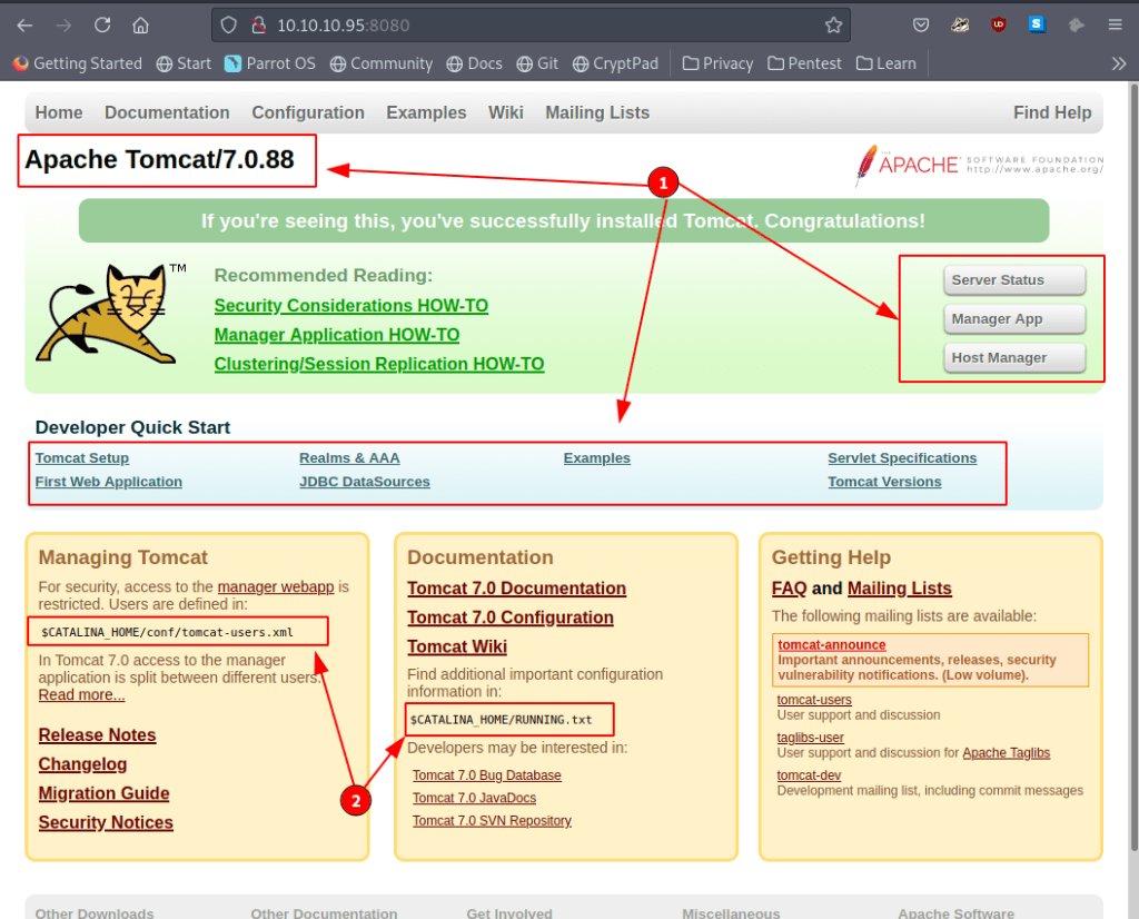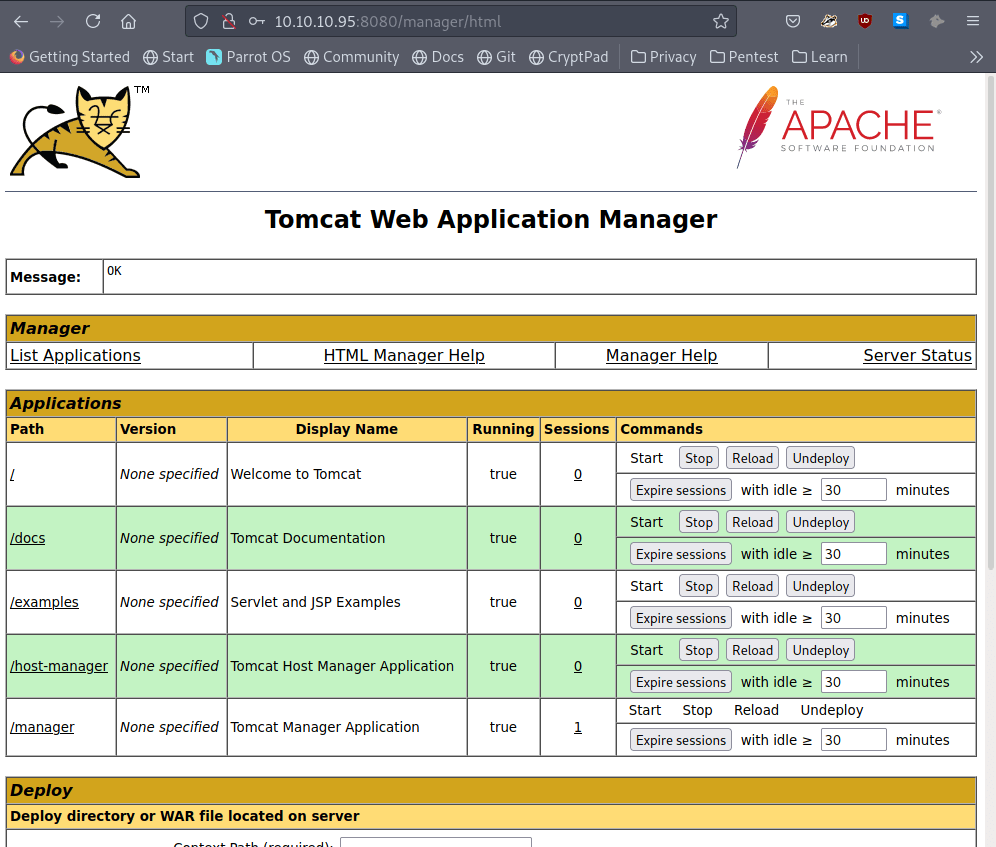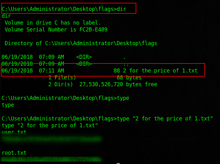 Okay this looks like a web server, lets visit itSome good info here, it looks like a default webpage, use nikto and gobuster to enumerate further. With our scans running in the background, poke around the website some moreSome more good infohere I am looking for php files, note the -x option.Okay this is really bad, it looks like we can login to the server nowLook up a script for a reverse shell, here I am using the msfvenom generate java shellBrowse to the upload a file section and upload your reverse shell script, verify the new url. Visit the page to executeOur shell should connect to the target, looks like we have nt authority, very nice.Now we are free to locate the flags. use the type command and quotes to get both!