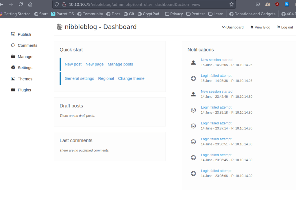 Looking at the options we have everything we needRan into this issue and was not able get around it. The only way I was able to fix it was by restarting the box and adding a line of code that I found from Googling the issue 😉Awesome, with that fixed it looks like we have a Meterpreter shellflag #1Okay lets log into the site as an admin and see what we can doHmmm looks like we may get a reverse shell? The problem I had was not being able to execute itLets see what we can execute as the user without a password