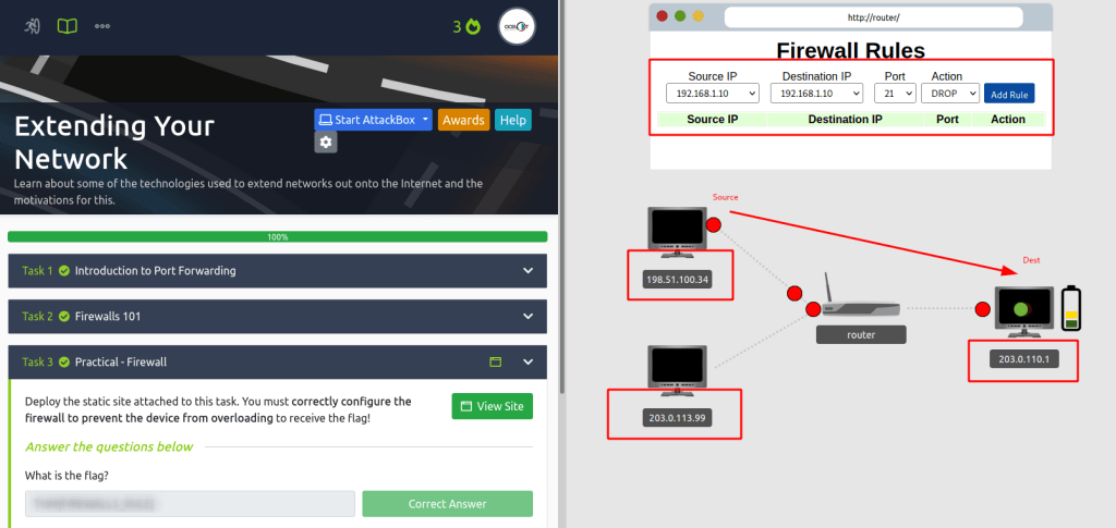 Here we are getting into some nitty gritty networking rules! If you get stuck just think, what is my source? Is it legit or a hacker? What is my destination? Do I want to allow or Deny a hackers IP?