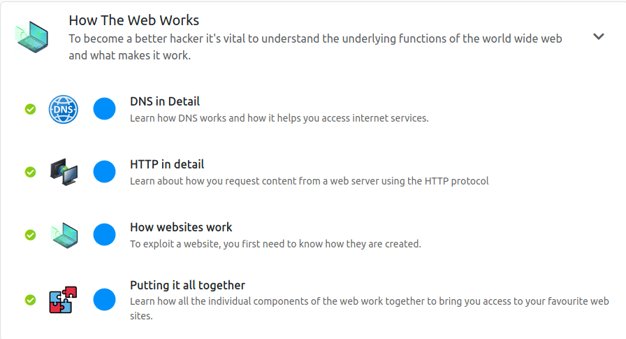 Here you can see the different categories that are covered in the path. You can also track your progress towards a printable certificate, and even earn some badges along the way!