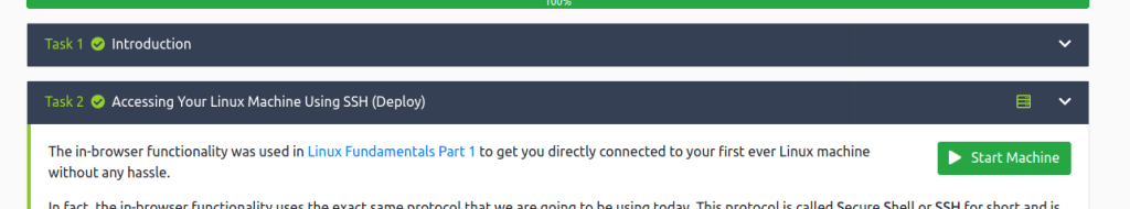 A new concept that is introduced here is SSH and OpenVPN. The first machine you will access in your browser however I find it much faster if I can hop on THM’s network and SSH in (if the box lets me). The best way to do this is to download your openvpn file from THM and connect to their network.