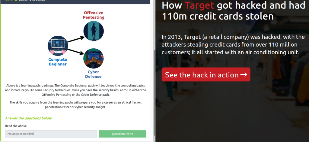 The world of Cybersecurity is large and can be overwhelming leaving you unsure of where to start. If you are interested in Cybersecurity and want to learn, TryHackMe has created a perfect jumping off point. The Pre-Security path provides a fantastic overview of the foundational components of IT, Networking, The Web, Linux, and Windows. Follow along with me as we work through the rooms, answer questions, and have some fun along the way!