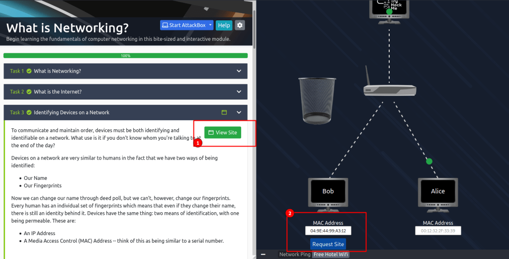 When getting to this portion you can edit the MAC address on Bobs computer and then “Request Site”The answers are going to be found in the above text the majority of the time.Don’t forget to join the rooms that are recommended!