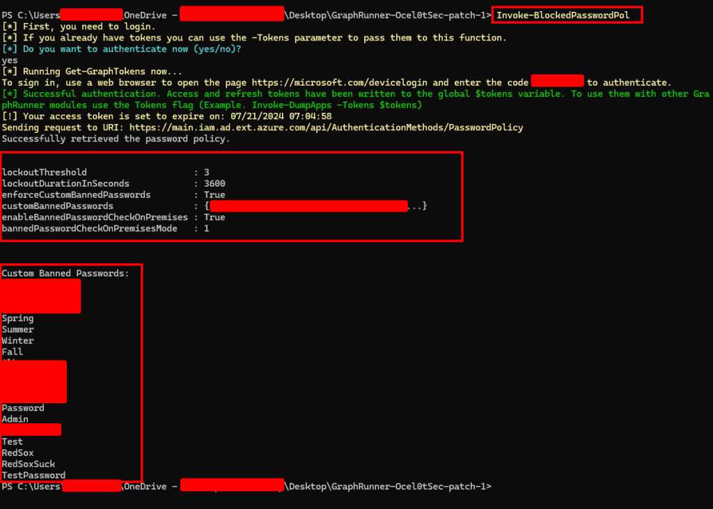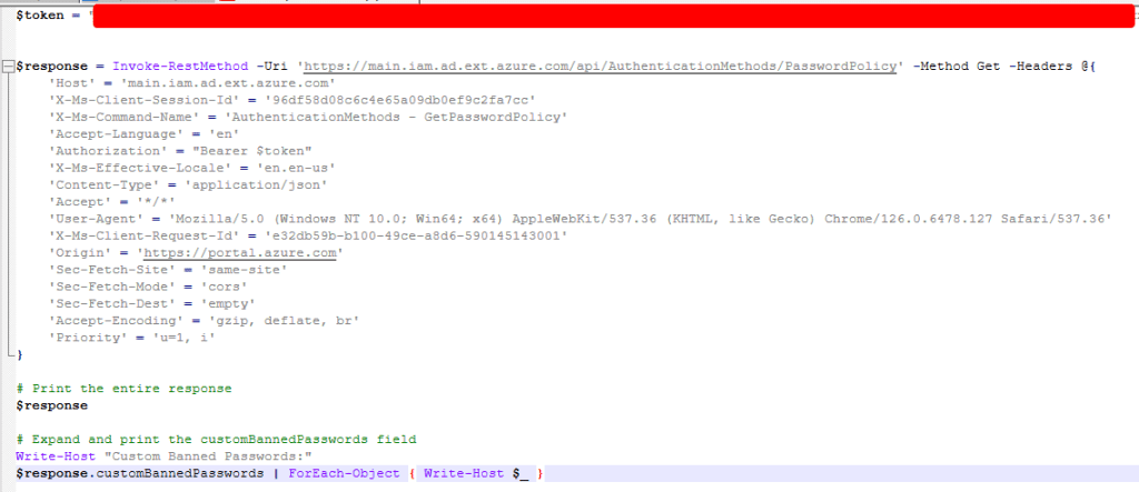 I wouldn’t even say this is a vulnerability as the requirements to list the banned passwords are rather high. If attempting to view them with a low privileged account to will not have the permissions required to view them. The custom banned password list requires at least “AuthenticationPolicyAdministrator” privileges and I have no idea how often that role is handed out. Obviously this works with the Global Administrator Role, but I will update this blog if I am able to get these results with any other permissions. Mainly I see this being used as a quick way for auditors to check if their clients are using all tools available to them, and providing them with guidance on how to improve their banned password list.