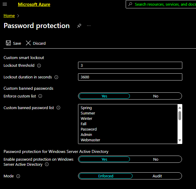 Microsoft has recently made a great feature available to almost all Azure AD (EntraID) administrators. Password protect allows those administrators to create a list of passwords that are unable to be used by the users. There are a couple of caveats to this system. The first is the use of a Global Block list, Synacktiv has a really great write-up on how to read this from on prem and you can check that out here. The second is that you can only add up to 1000 words to that list. The third is Microsoft takes that list and substitutes it a few ways. For example Password will cover P455w0RD, passworD, PaS5wOrD and so on. This is fantastic but I still think 1000 words is not enough. Password Protect is a really great feature that everyone should be using.