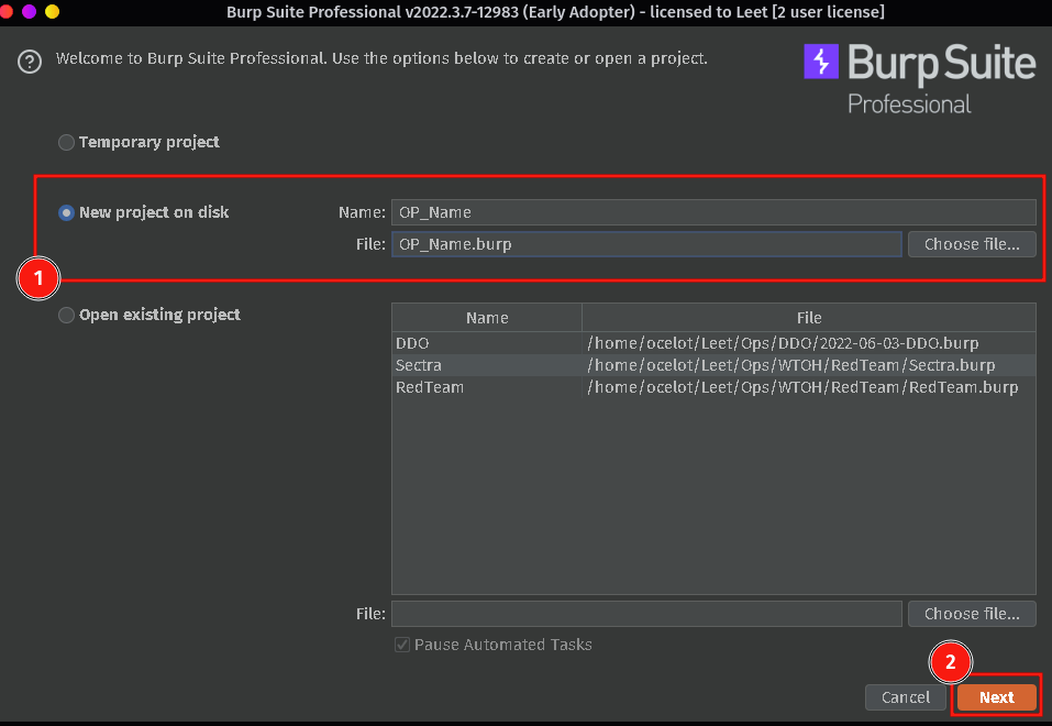 Load up burpsuite (professional) and create a new project on disk, use burp defaults on the next screen, and then start Burp.